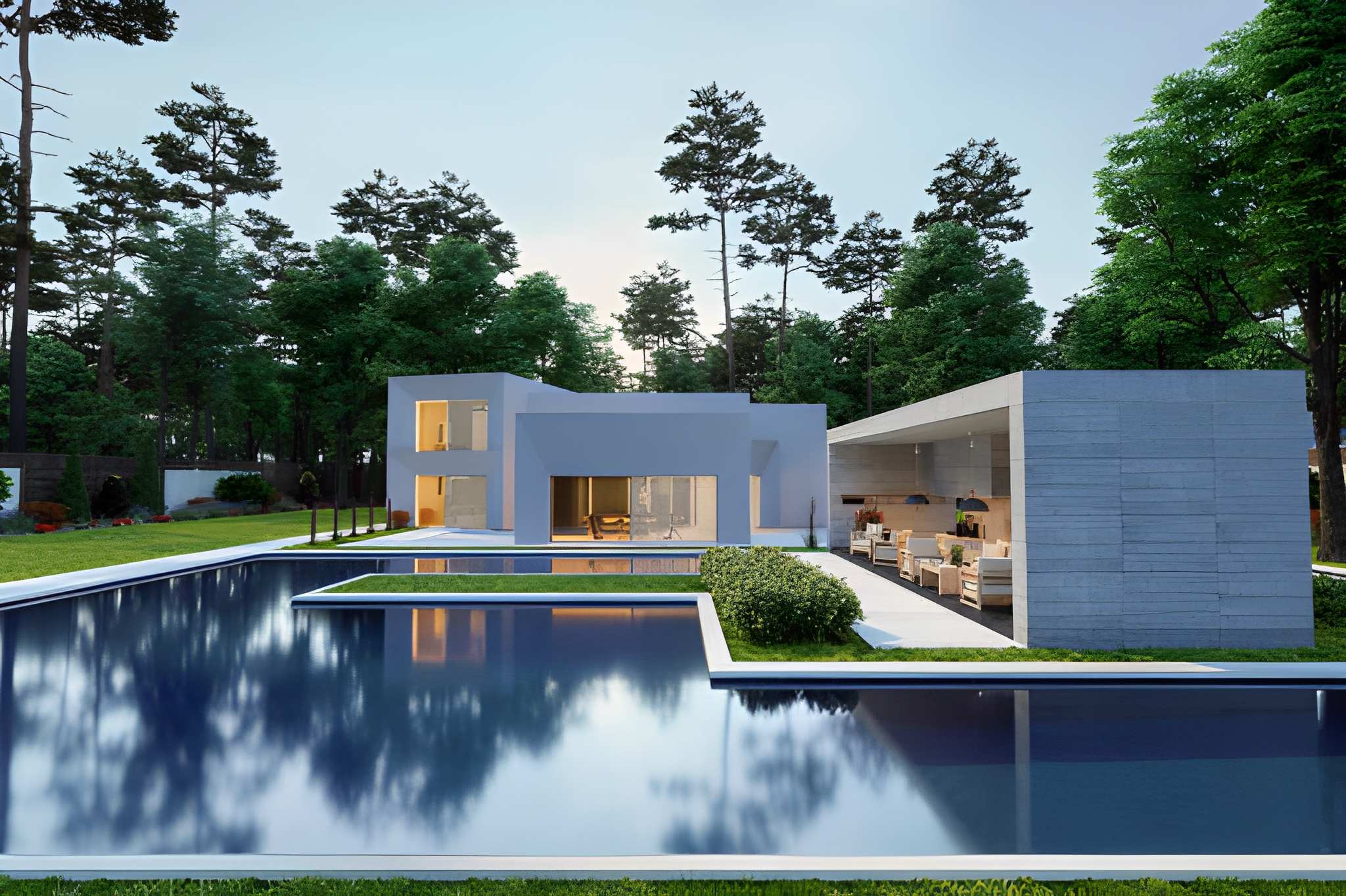 In Florida’s luxury outdoor living scene, the pool is just one part of a larger entertainment area. Trendy designs now tie the pool seamlessly to outdoor kitchens, covered lounges, and dining spaces. An outdoor kitchen with a grill, pizza oven, and bar counter allows you to cook and dine poolside. Adjacent fire bowls or a fire pit seating area extend your enjoyment into the night. Some homeowners add thatched-roof cabanas or pergolas for shade, complete with outdoor TVs and speakers. The idea is a complete outdoor lifestyle: sliding glass walls or retractable screens connect the indoor living room to the pool deck, making entertaining effortless. These integrated designs not only create a cohesive look but also increase the usable square footage of your home. In fact, luxury real estate experts note that buyers in Florida place a premium on homes with well-designed outdoor entertainment areas. By extending the outdoor living space around the pool, you’re effectively adding a valuable “room” that boosts curb appeal and market value.